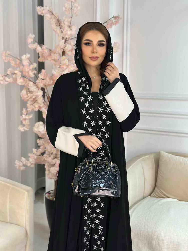 تم تصميم عباية نجمة السوداء لتناسب مختلف الأذواق والمناسبات، حيث تجمع بين البساطة الملكية والتفاصيل العصرية الجذابة. تتميز هذه العباية بقصّتها الأنيقة التي تضفي لمسة من الفخامة، إضافةً إلى التطريزات الراقية التي تمنحها مظهرًا ساحرًا.