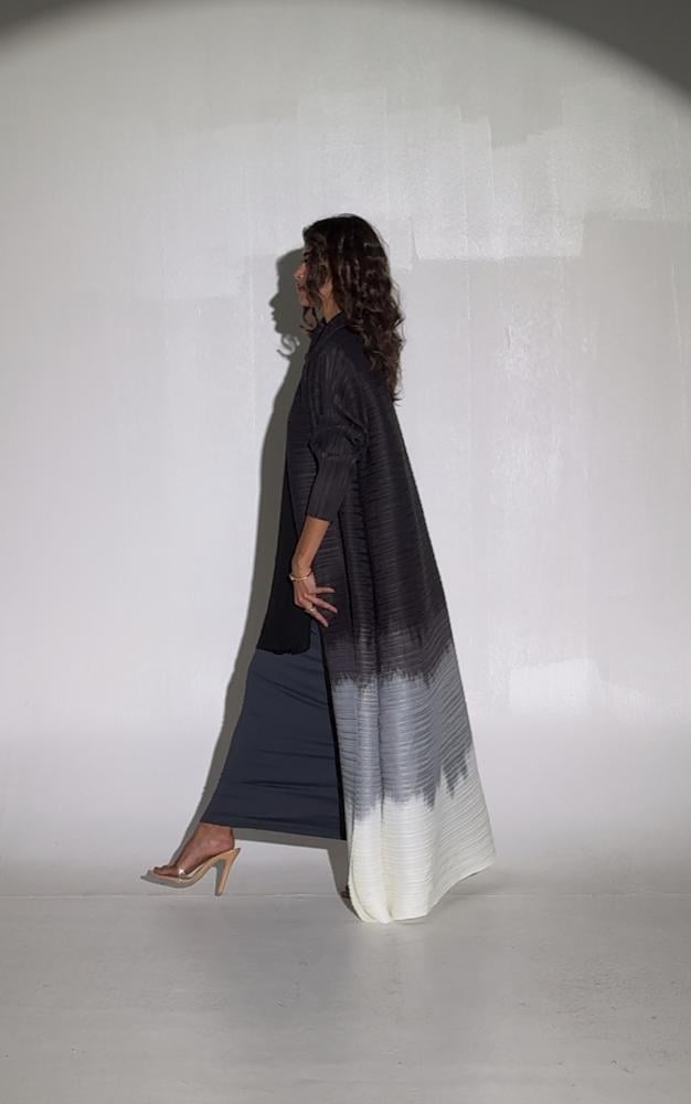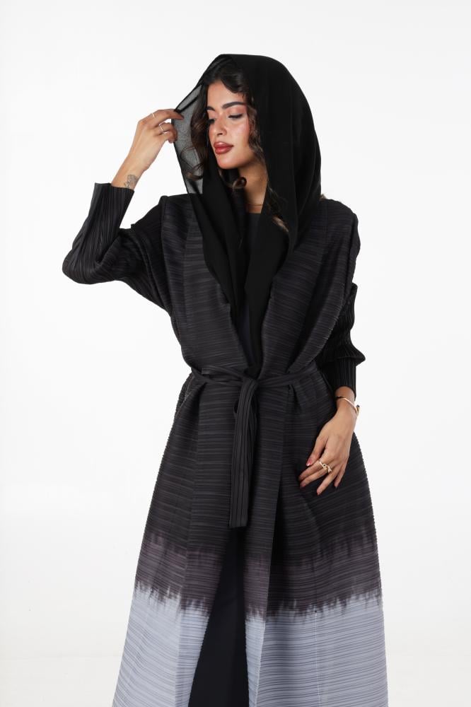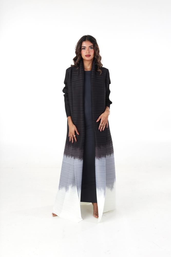 تمزج عباية بوينت بين التصميم الساحر والطابع المريح، فهي مصنوعة من قماش مطاطي مزين بطيات بليسيه وتدريج من الألوان . وتأتي بتصميم سهل الارتداء يلائم إطلالتك في التجمعات . ويمكن تنسيقها مع حذاء بكعب مرتفع من اختيارك وحقيبة يد لمظهر يخطف الأنظار.