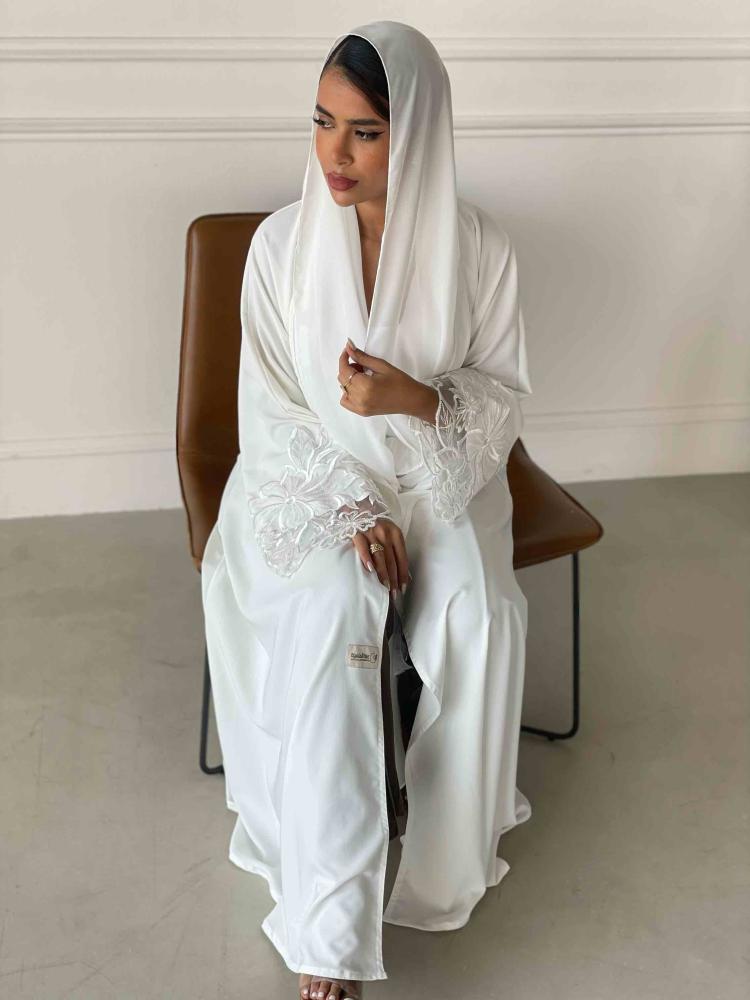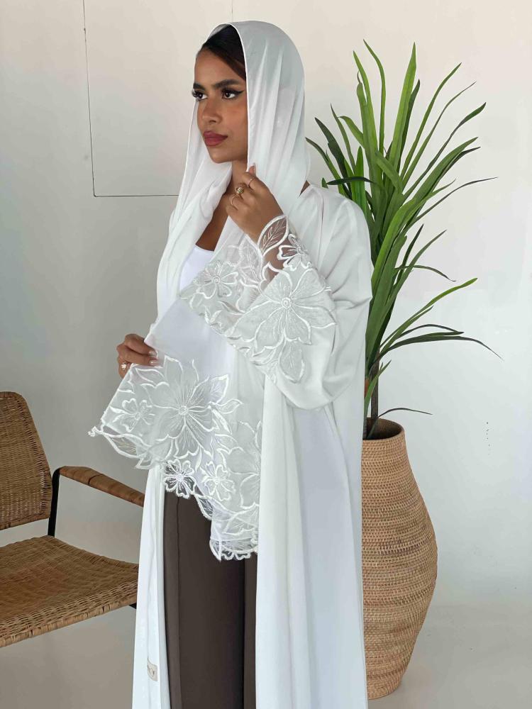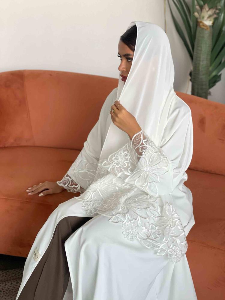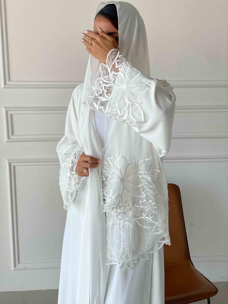 عباية الورود البيضاء بتفاصيل مميزة بالدانتيل وهي الخيار الأمثل لكل من تبحث عن الأناقة والرقي في إطلالتها اليومية أو في المناسبات الخاصة، تُضفي هذه العباية المظهر الجذاب، اضافة الى طرحة بيضاء مزودة بالدانتيل حيث تجمع بين البساطة والفخامة في قطعة واحدة، احصلي الآن على أفضل أنواع العبايات من متجر عزة.