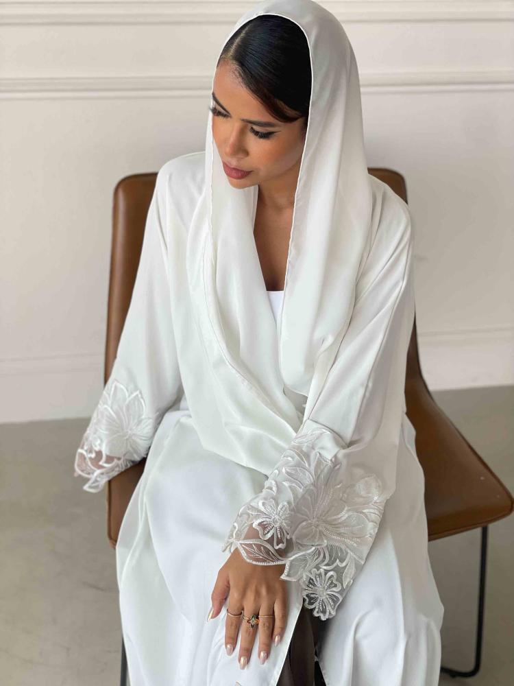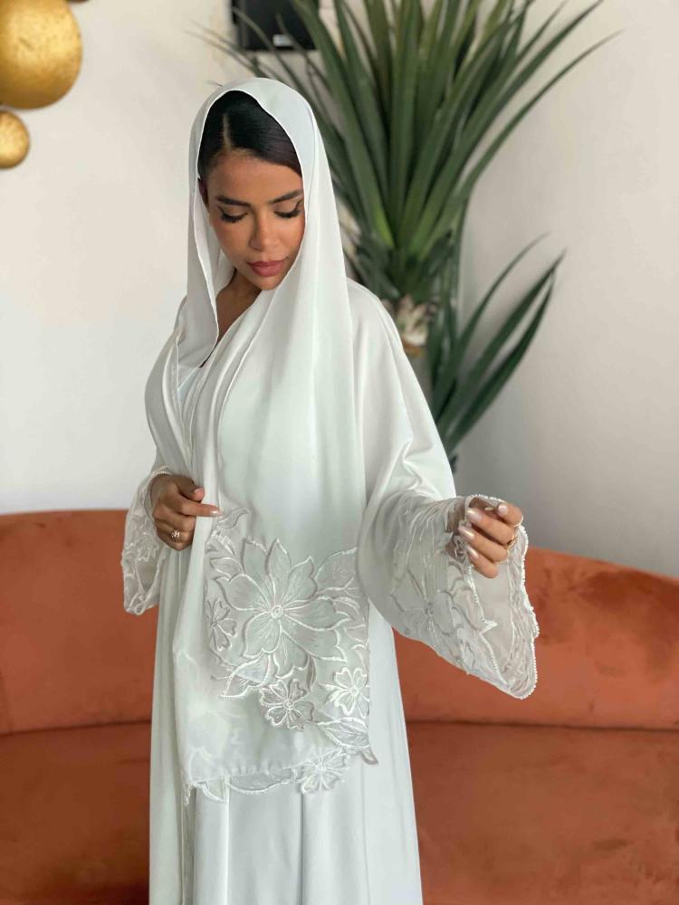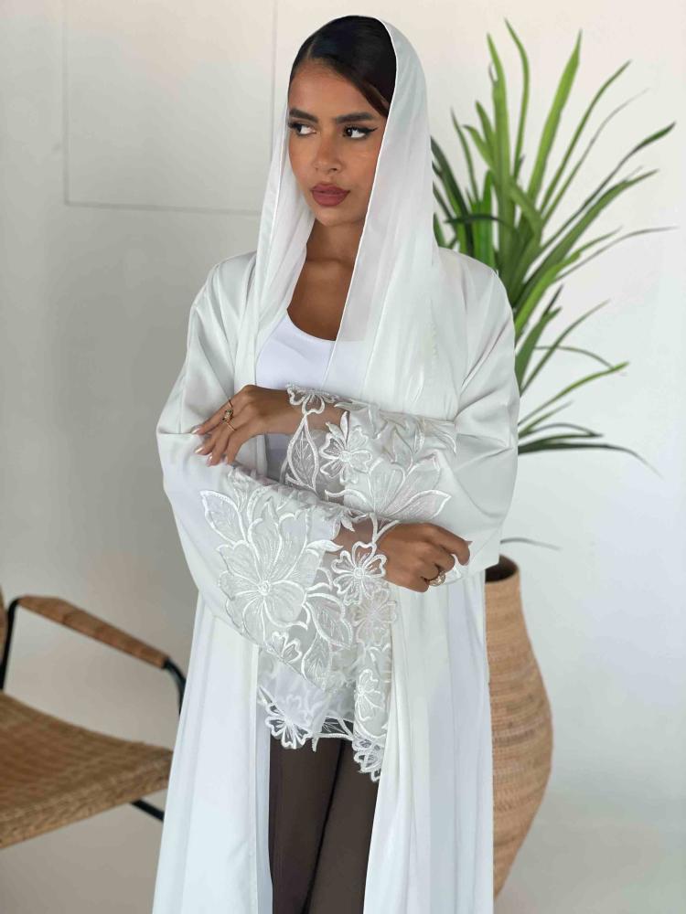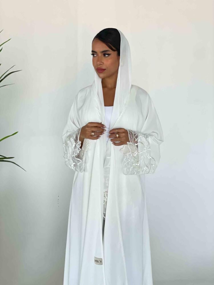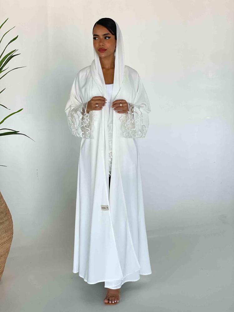 عباية الورود البيضاء بتفاصيل مميزة بالدانتيل وهي الخيار الأمثل لكل من تبحث عن الأناقة والرقي في إطلالتها اليومية أو في المناسبات الخاصة، تُضفي هذه العباية المظهر الجذاب، اضافة الى طرحة بيضاء مزودة بالدانتيل حيث تجمع بين البساطة والفخامة في قطعة واحدة، احصلي الآن على أفضل أنواع العبايات من متجر عزة.