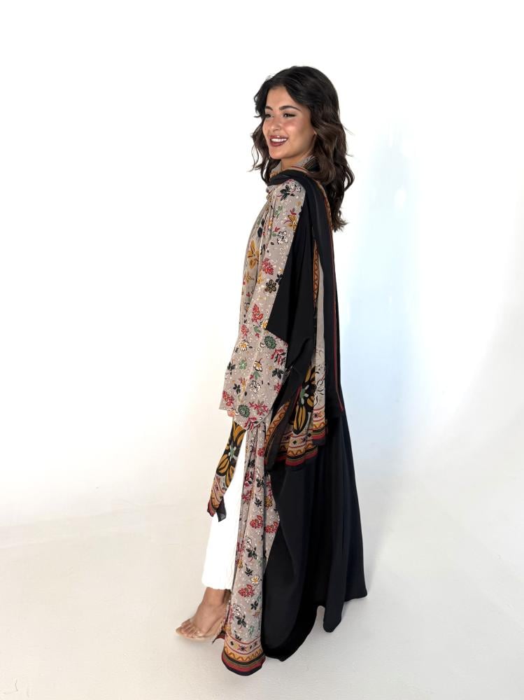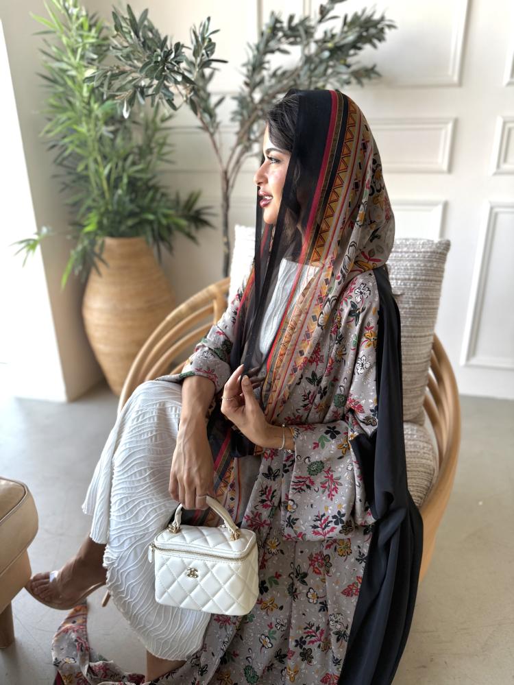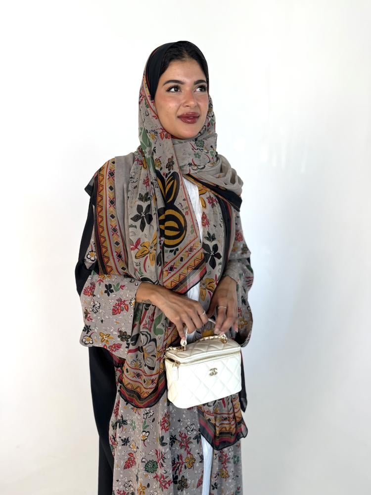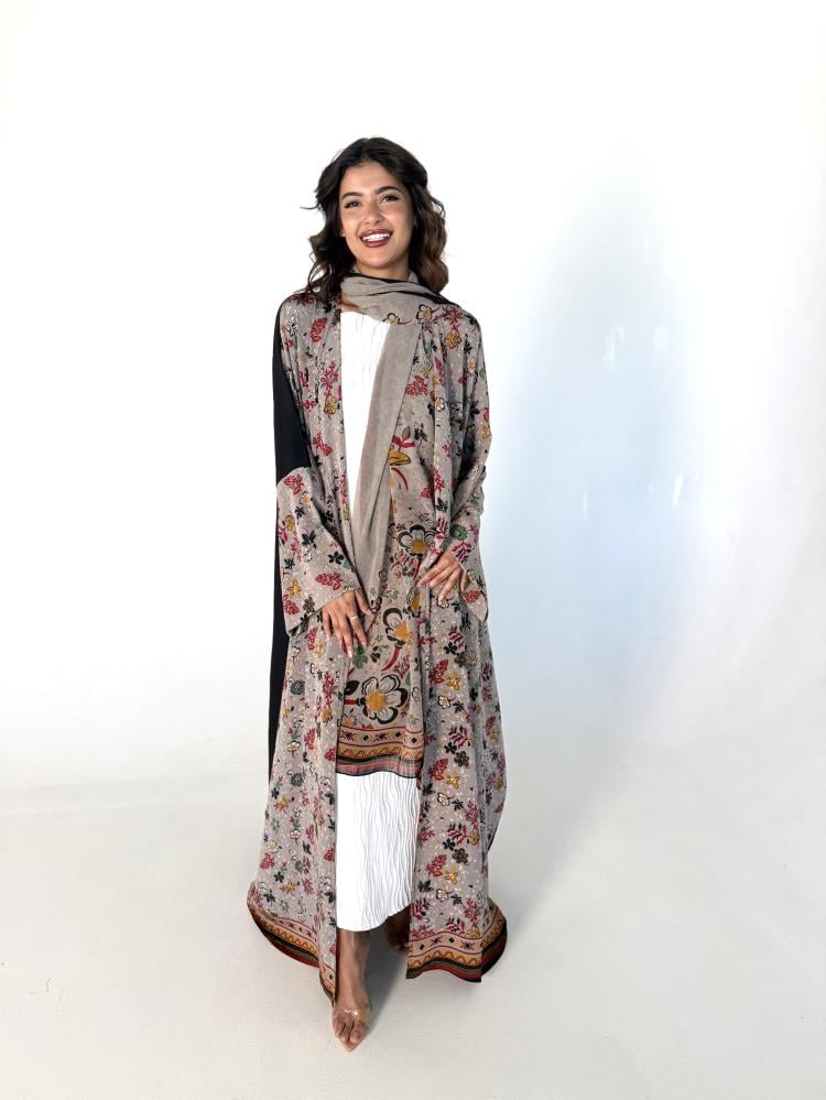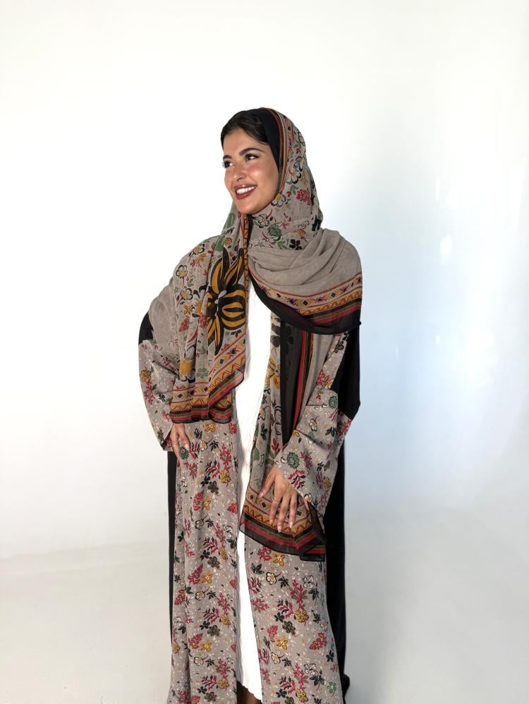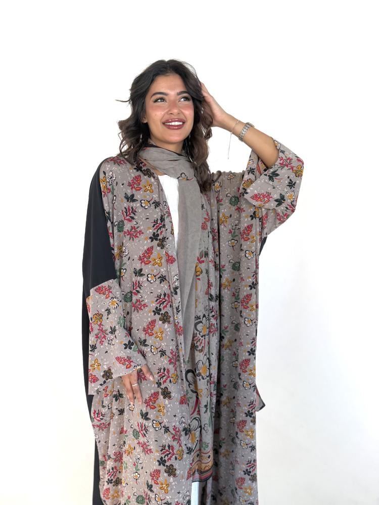 عباية عملية انيقة بقصة نص بشت بقماش الحرير الهندي مع طرحة مشجرة
