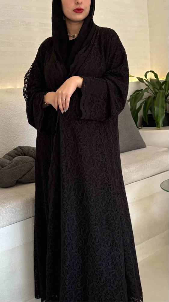 عباية بقماش الدانتيل الاسود الفاخر عباية انيقة ومميزة ذات تفاصيل ملفتة من جميع جذورها