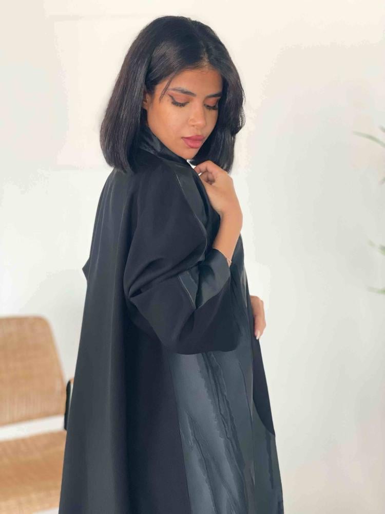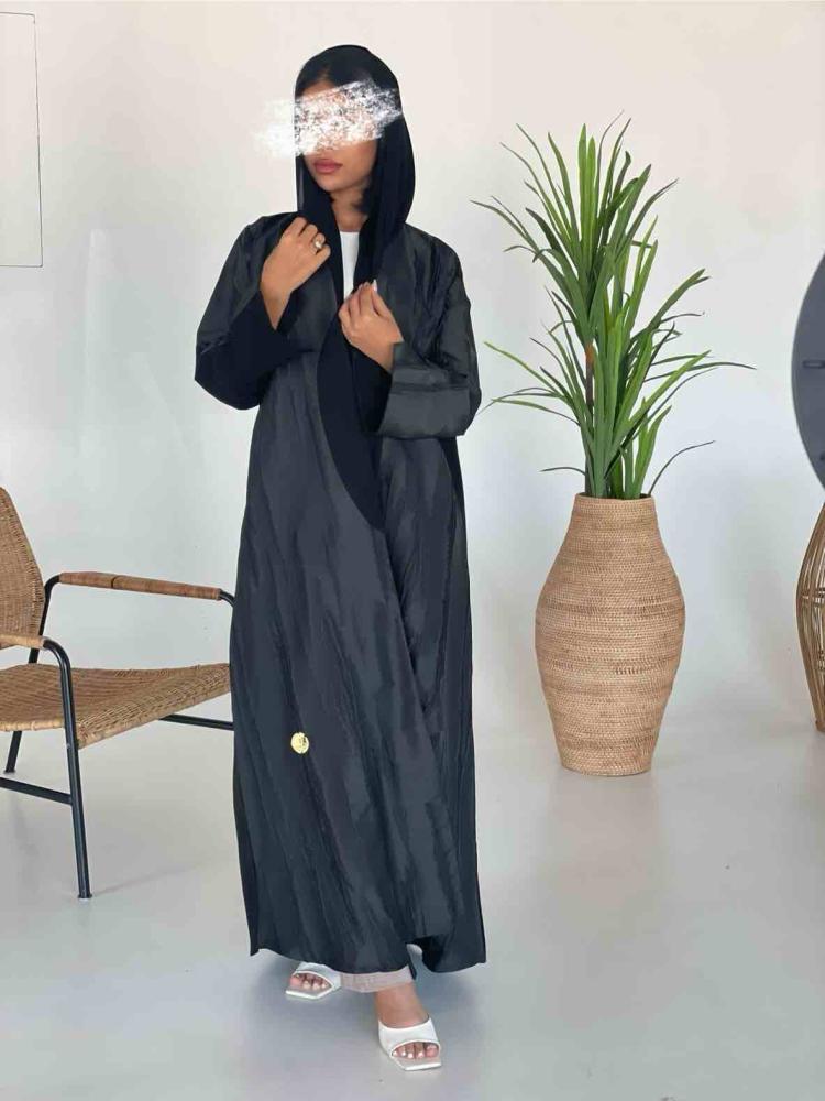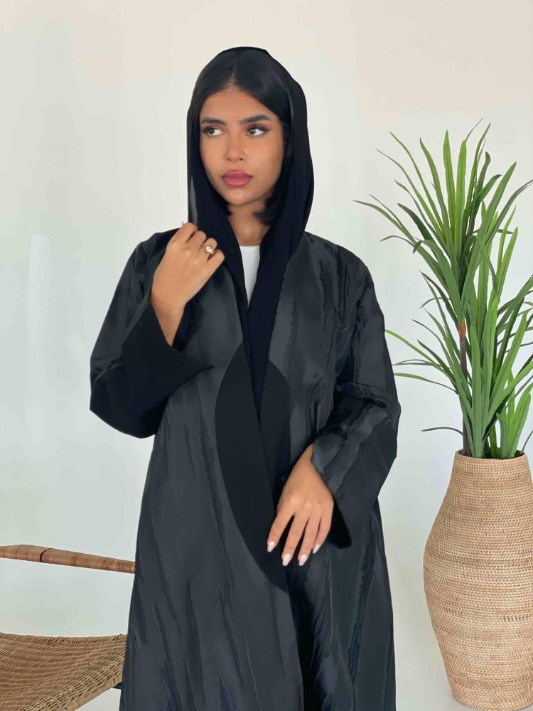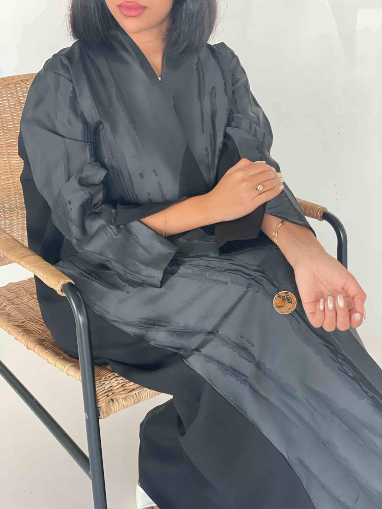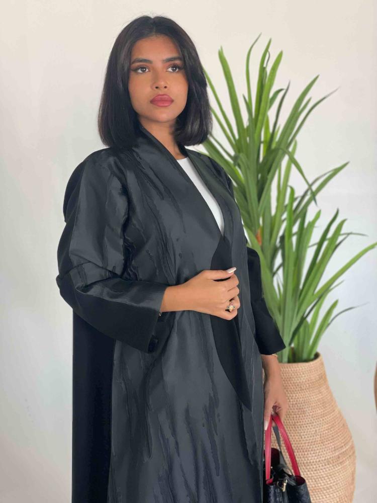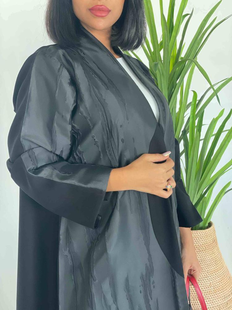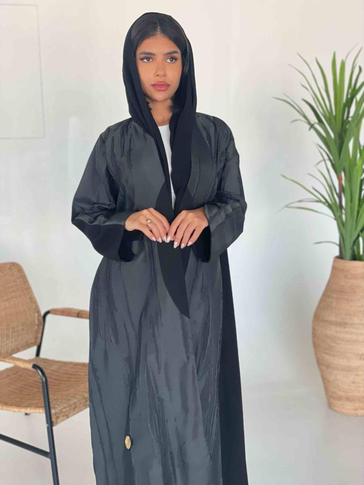 عباية رسميه فخمه جدا بتصميم رائع بقماش الجاكار رمادي من الامام بعروق سوداء ، وقماش باللون الأسود من الخلف عبايه ،أنيقه لذوات الذوق الرفيع ، لإطلالة لمظهر اكثر رقة ونعومة. بقماش مريح وعملي مع طرحه سوداء
